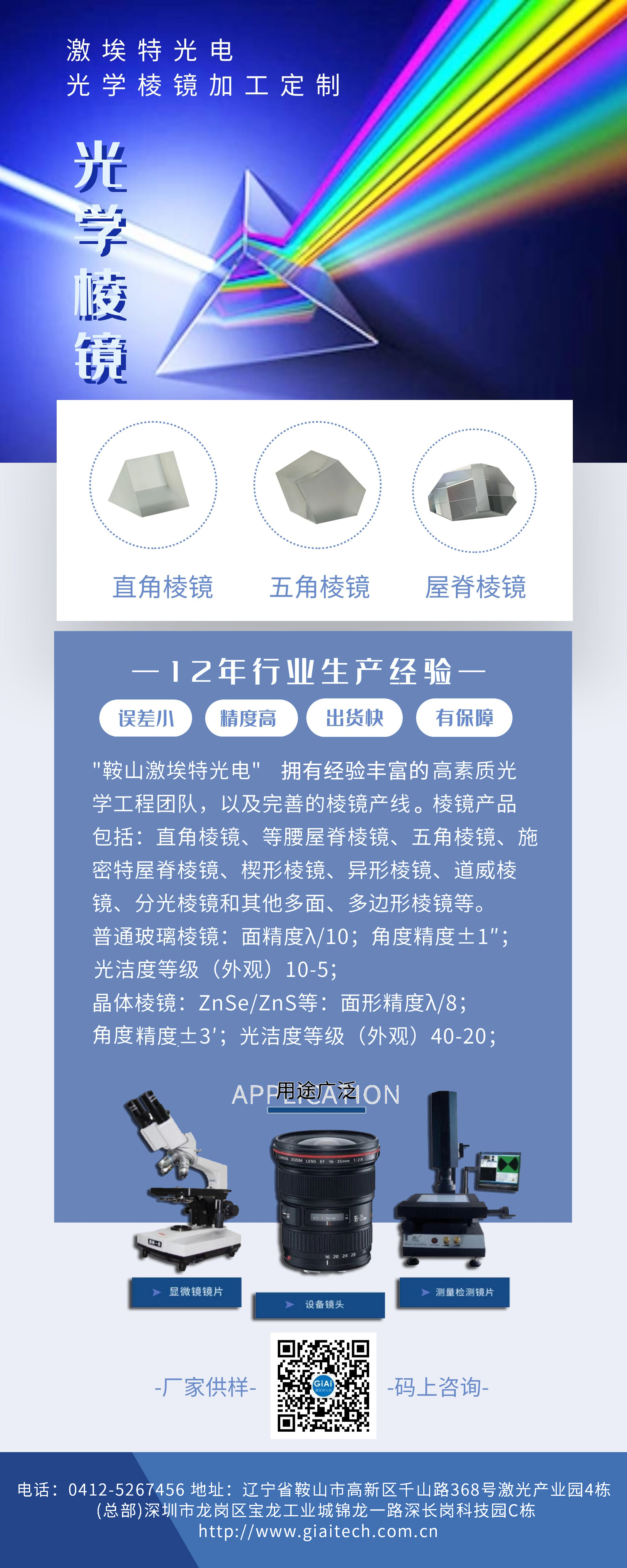 在光學儀器中應用很廣。棱鏡按其性質(zhì)和用途可分為若干種。例如,在光譜儀器中把復合光分解為光譜的“色散棱鏡”,較常用的是等邊三棱鏡;