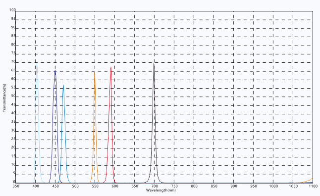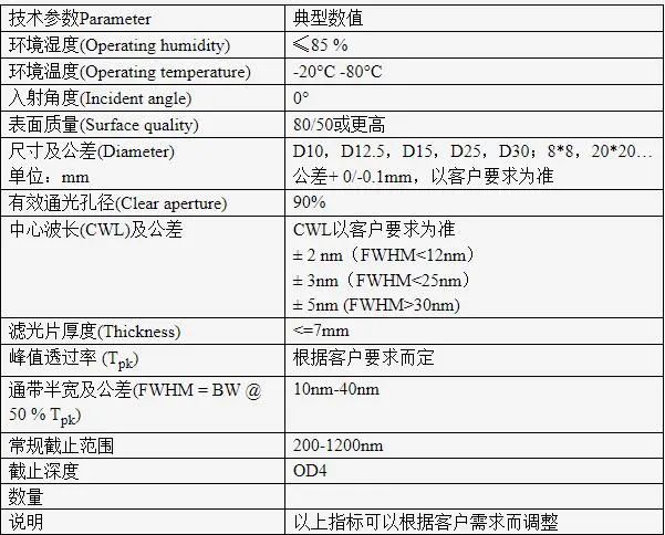 也就是這種濾光片在特定的波段允許光信號(hào)通過,而偏離這個(gè)波段以外的兩側(cè)光信號(hào)被阻止,窄帶濾光片的通帶相對來說比較窄,