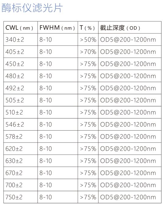 酶標(biāo)儀窄帶濾光片 激埃特光電生產(chǎn)的,酶標(biāo)儀干涉片采用高穩(wěn)定度窄帶介子膜技術(shù),中心波長定位精度高,且透射比高,