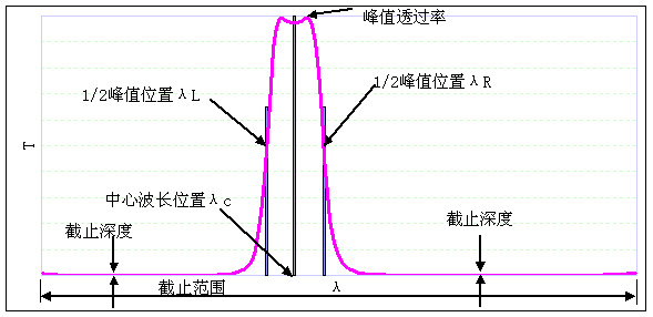 其中,別離對(duì)應(yīng)透過率為峰值的一半時(shí)通帶左邊和右側(cè)的波長方位