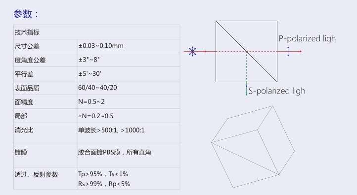 偏振分光棱鏡 Written by Giai// 九月 20, 2016// 光學棱鏡系列// 產品介紹: 偏振分光棱鏡能把入射的非偏振光分成兩束垂直的線偏光。其中P偏光完全通過,而S偏光 以45度角被反射,出射方向與P光成90度角。此偏振分光棱鏡由一對高精度直角棱鏡膠合而 成,其中一個棱鏡的斜邊上鍍有偏振分光介質膜。 Related Posts 膠合棱鏡 膠合棱鏡 轉向棱鏡 轉向棱鏡