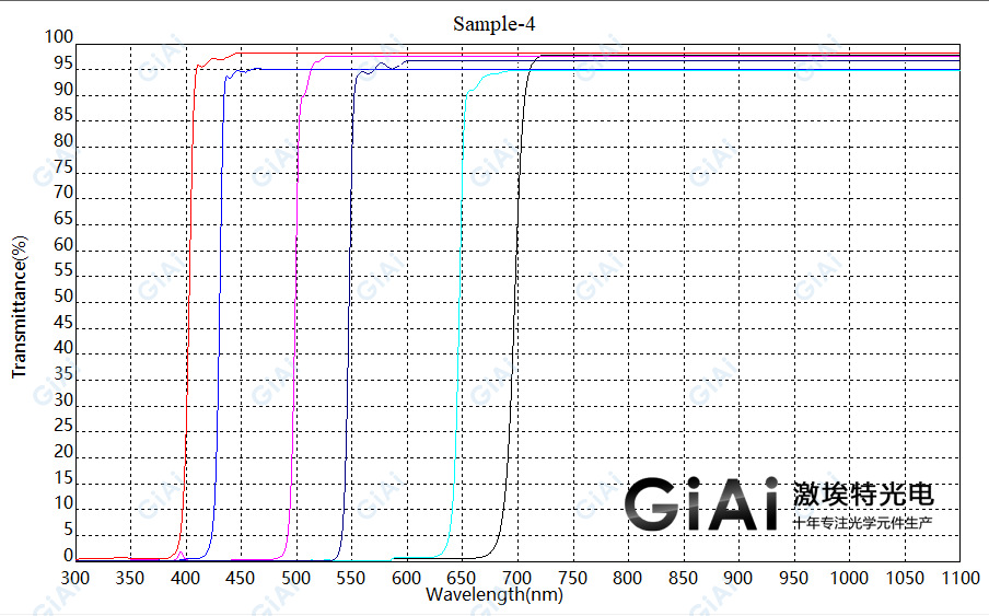 ? ???與傳統(tǒng)的有色光學玻璃濾光片相比, 我公司生產的短波通及長波通濾光片具有截止陡度大、透過率高以及背景光密度大的優(yōu)勢,而且同傳統(tǒng)光學玻璃的方法完全不同的一點,當入射角變化時(從0度向大角度轉動),特征截止波長將會向短波方向移動。這個功能可以應用在系統(tǒng)微調方面,并能夠得到您所需的波長。