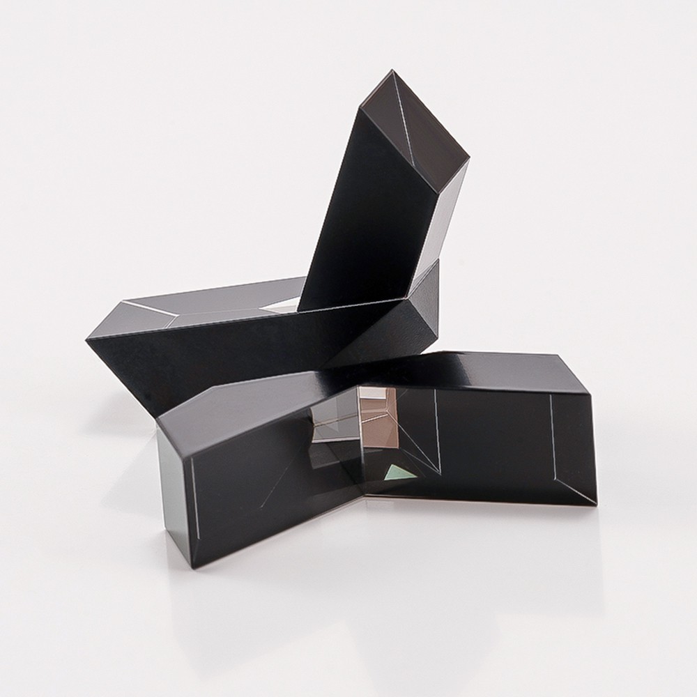 該棱鏡是由兩個(gè)光學(xué)棱鏡膠合在一起的,形成一個(gè)V形組件。